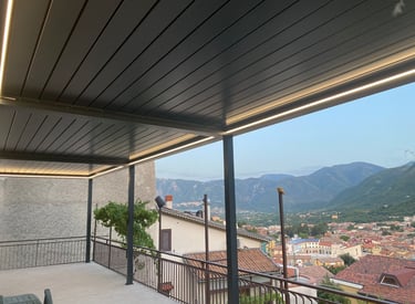 Ruchome lamele: Najważniejszy element. Możesz obracać aluminiowe pióra na dachu. Chcesz słońca? Otwierasz. Chcesz cienia, ale z przewiewem? Ustawiasz pod kątem. Zaczyna padać? Zamykasz na płasko i masz szczelny dach.